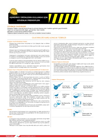 Makinelerin muhafazaları (koruyucu ekipmanları) asla çıkarılmamalı- olarak çalıșmaktan kaçınılmalıdır. Doğru ürün seçilmelidir, uygun ol-